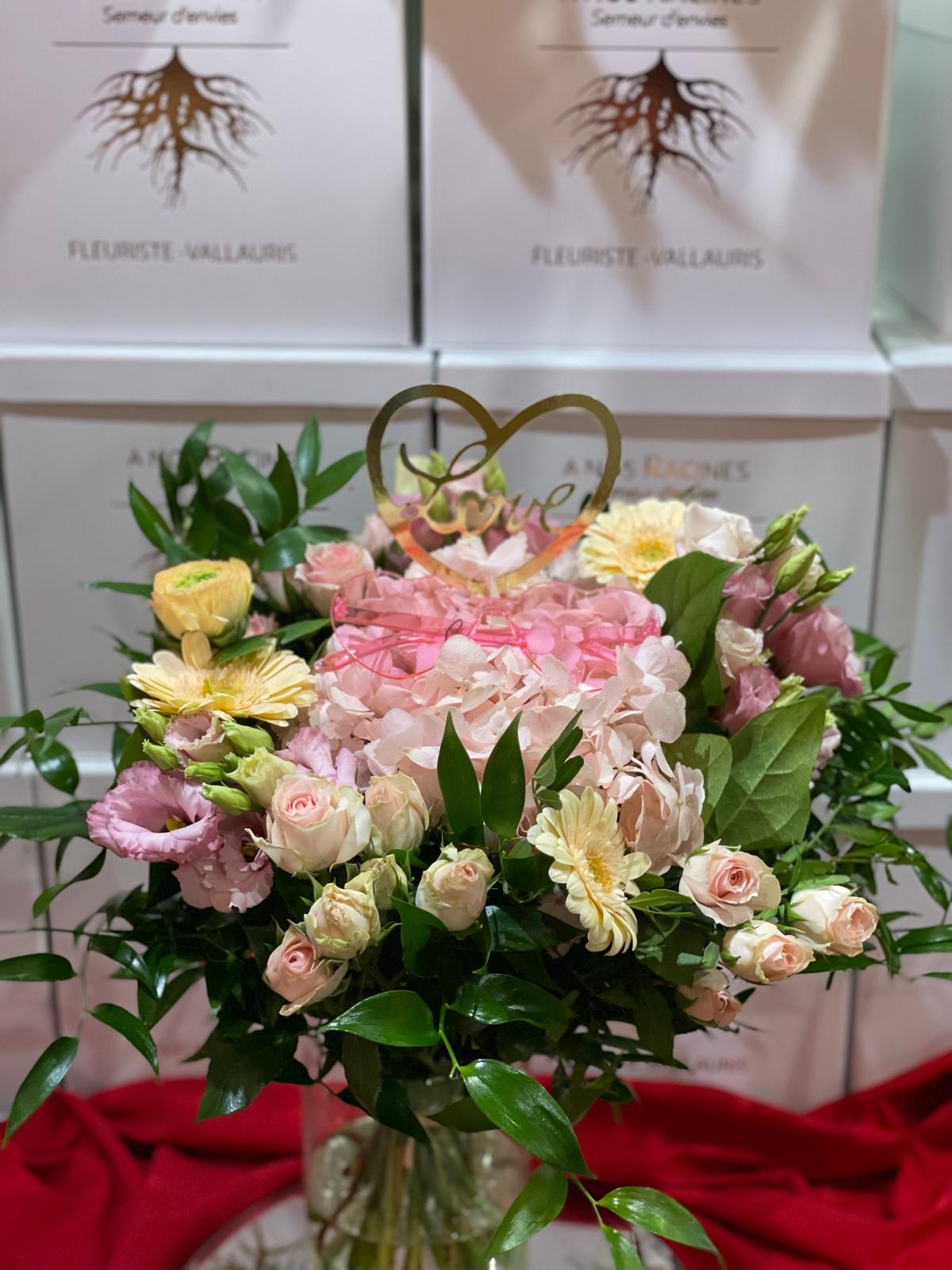 Roses blush, hortensia pastel et fleurs délicates dans une harmonie douce et raffinée.